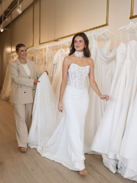 We are excited to hear all about your wedding vision and what you are looking for in your dream gown. Then, with your personal style and wedding venue in mind, we will help you choose the perfect fit.